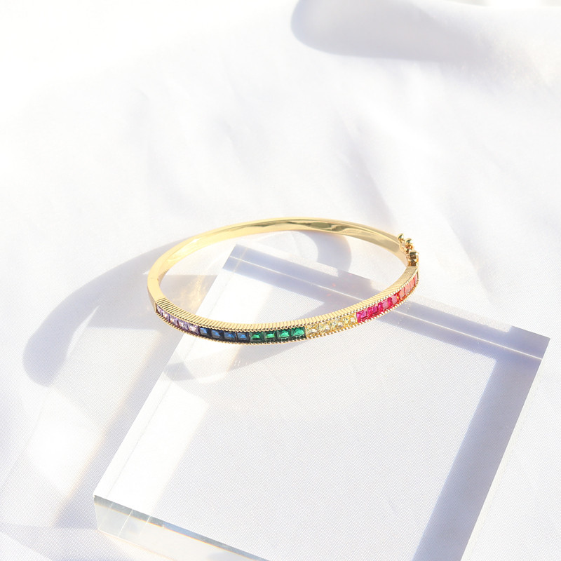 Жіночий літній браслет із яскравими різнобарвними каменями фіанітами.